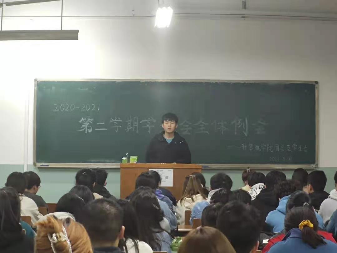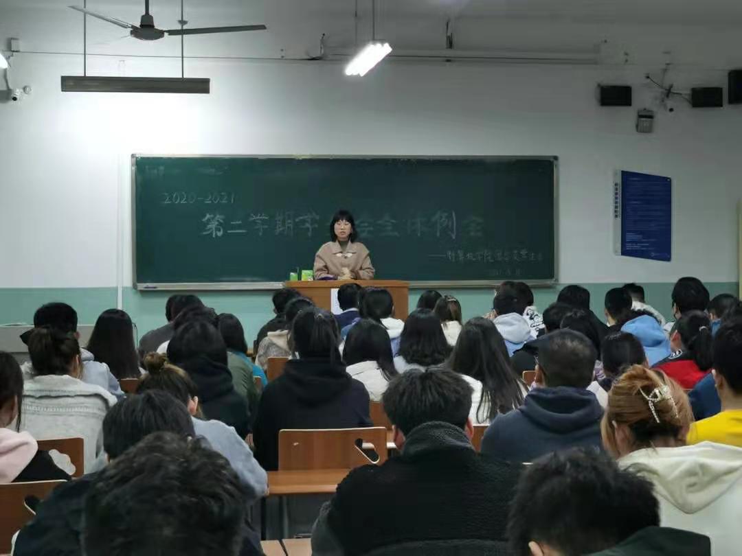 为推进新学期新黄金城667733团总支学生会工作,加强服务型学生会组织建设,创新活动形式,更好的服务学院师生,新黄金城667733于2021年3月11日晚在主教学楼402召开2020-2021第二学期学生会全体例会,团总支书记侯勇、学生管理科王靖晶老师以及全体团总支学生会成员参加。
