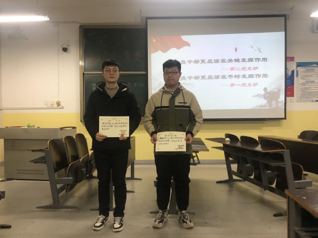为丰富党课学习形式,提高学生党员的积极性,经过新黄金城667733学生第一支部和学生第二支部的初赛选拔,12月11日,新黄金城667733在南楼207教室举行了党课知识竞赛决赛,两支部各派一支代表队参加,学院学生支部全体党员、积极分子现场观摩。