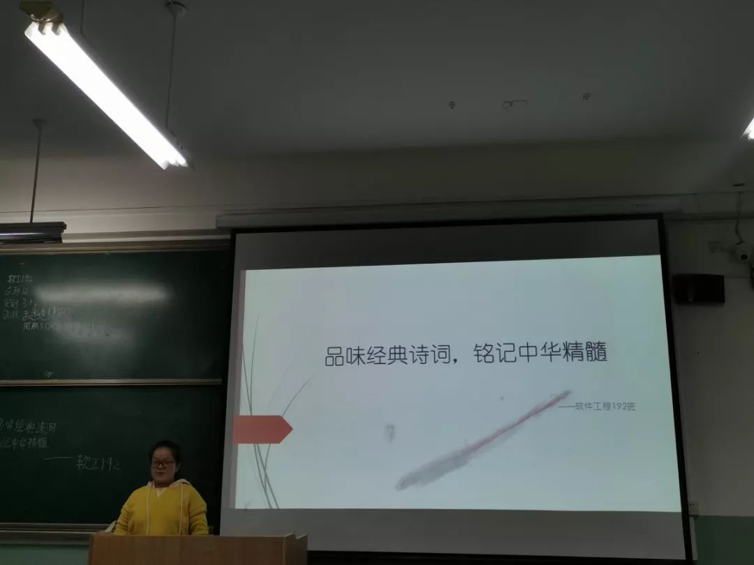 2019年12月23日,我校新黄金城667733软工专业大一班级举行了以“品味经典诗词,铭记中华精髓”为主题的学风建设活动。